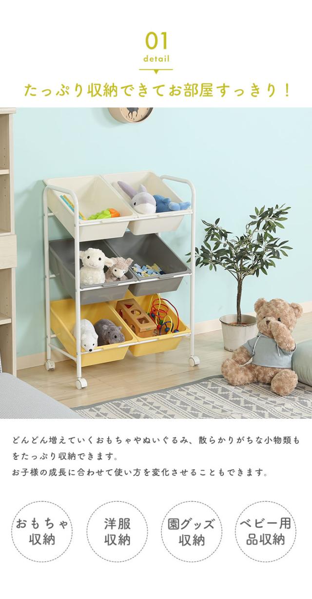【値下げ】おもちゃ収納 ラック キャスター付き 幅61 奥行36 高さ86 2列×3段 スリム 収納ラック おかたづけ 収納 こども 大容量 かわいい おしゃれ 北欧 リビング おもちゃ箱 トイラック 玩具箱 ぬいぐるみ 子供服 キッズラック おもちゃラック バスケット かご おむつ