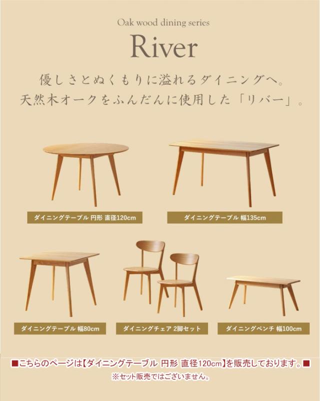 | ダイニング家具シリーズ River/リバー ● ダイニングテーブル 幅80cm ● ダイニングテーブル 幅135cm ● 円形ダイニングテーブル 120cm ● ダイニングチェア 2脚セット ● ダイニングベンチ ※このページは[円形ダイニングテーブル 120cm]を販売しております。 |