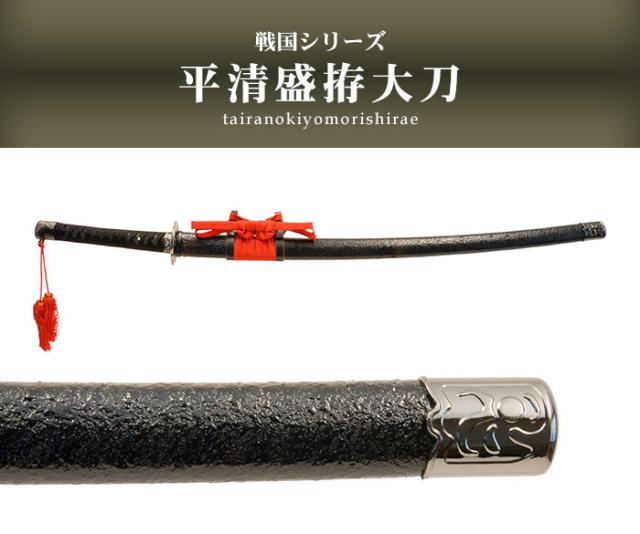 キーワード: 日本刀 模造刀 戦国 戦国武将 平清盛拵 大刀 日本製 /全長 106cm/刃渡り 70cm/柄長 25cm/アルミ製小烏丸刀身/直刃刃紋/黒艶叩き塗り鞘/木瓜型 太刀鍔/ 太刀用頭金具、 太刀用縁金具 刀剣 模擬刀 刀 名刀 刃 美術刀 剣侍刀 侍 サムライ コスプレ グッズ 観賞用 刀剣 乱舞 演劇 舞台 小道具 時代劇 歴史 海外 おみやげ お土産 日本製 国産 人気 おすすめ コレクション 仮装 高級 かたな リアル かっこいい 端午の節句 子供の日 こどもの日 美術品 工芸品 コスプレイヤー ハロウィン ハロウィーン