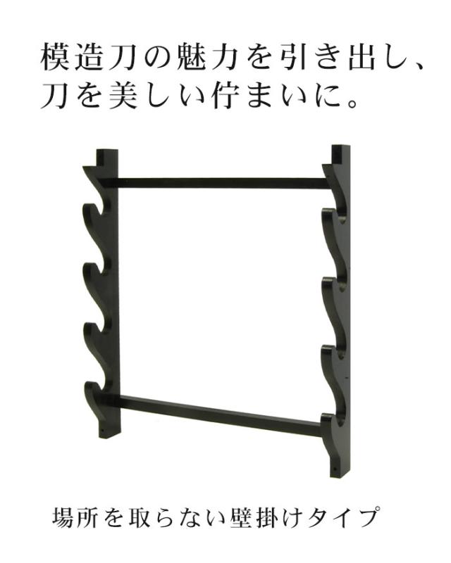 壁掛用 刀掛台 四本掛 刀掛け 剣置き 幅41 奥行7 高さ46.8cm 天然木 つや消し 刀掛け 刀置き 刀台 据え置き 四本用 四本掛け 刀置台 刀掛け台 横置き 据置型 黒塗り 木製 模造刀 居合刀 刀 侍 剣 武器 お土産 おみやげ プレゼント 外国人 喜ぶ 時代劇 小道具 お芝居 稽古