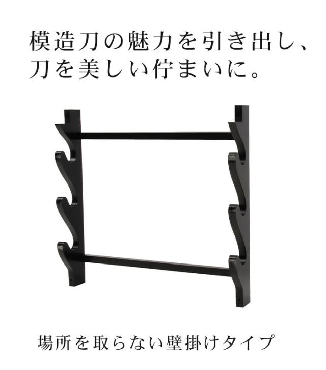 壁掛用 刀掛台 三本掛 刀掛け 剣置き 幅41 奥行7 高さ38cm 天然木 つや消し 刀掛け 刀置き 刀台 据え置き 三本用 三本掛け 木 刀置台 刀掛け台 横置き 据置型 黒塗り 木製 模造刀 居合刀 刀 侍 剣 武器 お土産 おみやげ プレゼント 外国人 喜ぶ 時代劇 小道具 お芝居 稽古
