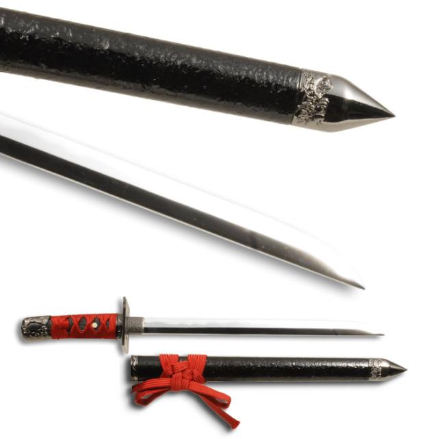 | 〔鞘〕プラ製 〔柄〕プラ製(黒鮫) 〔金属〕合金 〔下緒〕人絹 赤糸 〔柄糸〕人絹 赤糸 |
