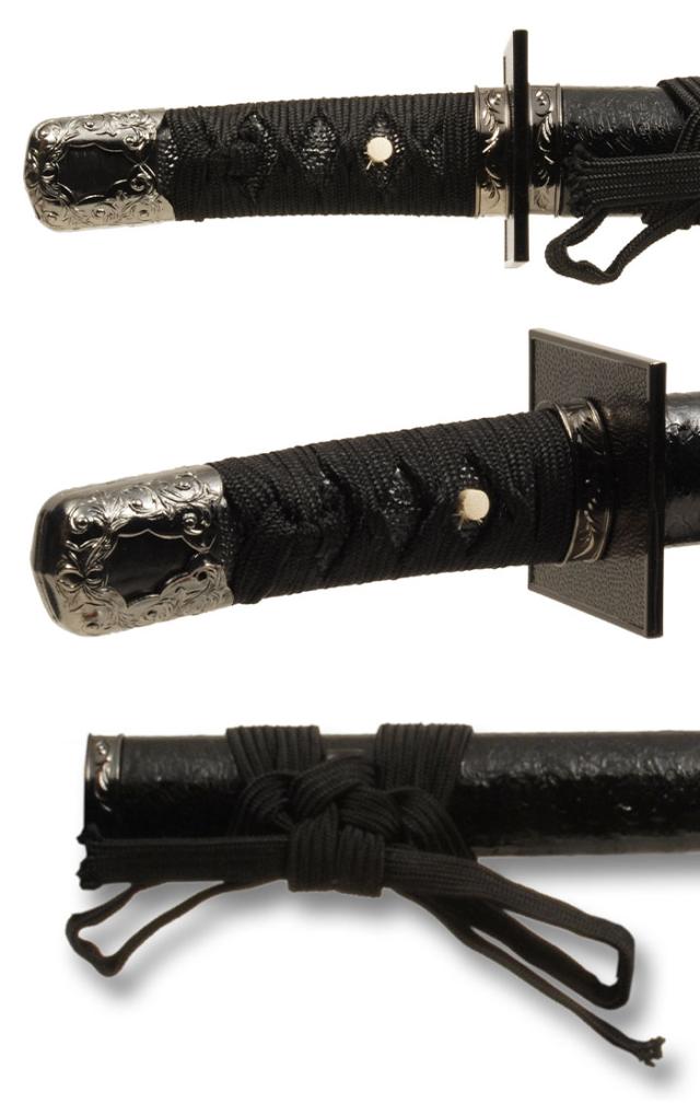 | 〔鞘〕プラ製 〔柄〕プラ製(黒鮫) 〔金属〕合金 〔下緒〕人絹 黒糸 〔柄糸〕人絹 黒糸 |