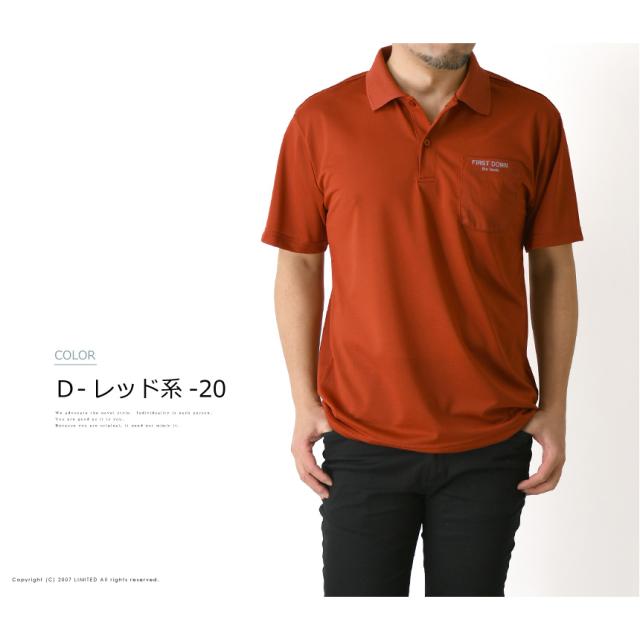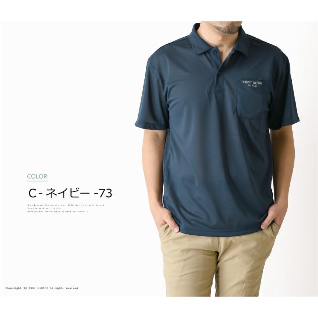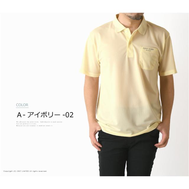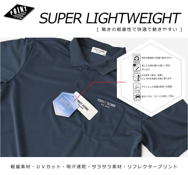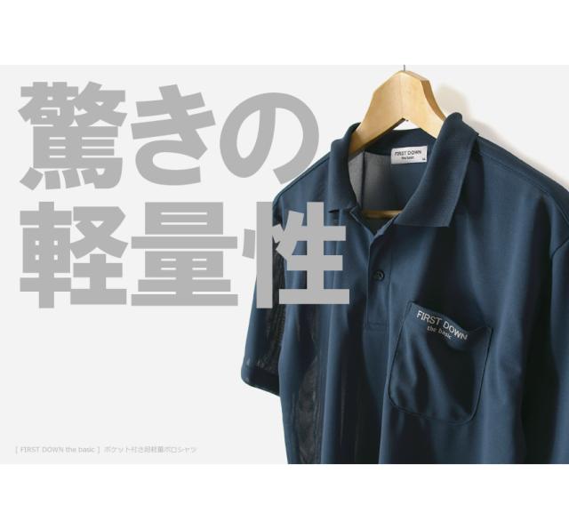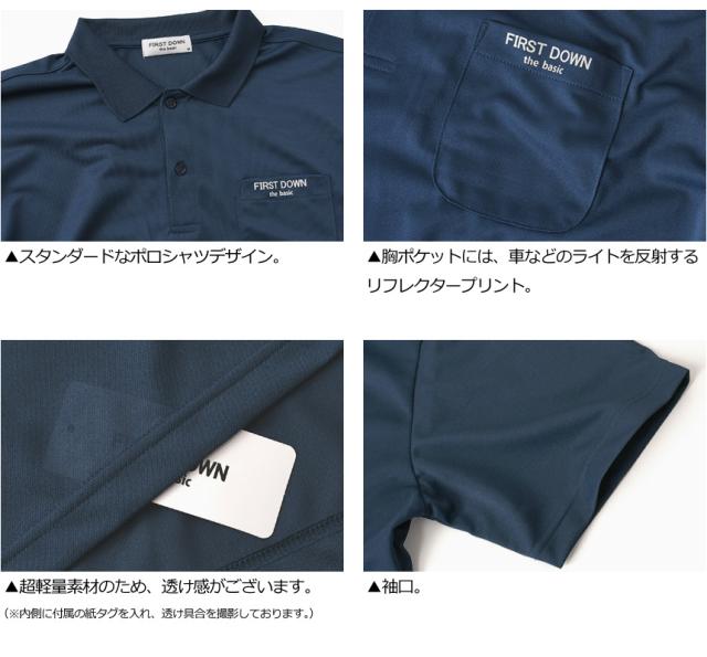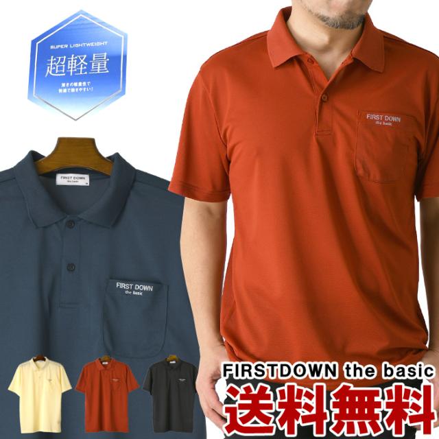 First Down ファーストダウン 超軽量 鹿の子 ポケ付き ポロシャツ メンズ 半袖 夏 ドライ 吸水速乾 ゴルフ スポーツ UVカット ブランド ロゴ リフレクター 送料無料 通販M15【9A0280】