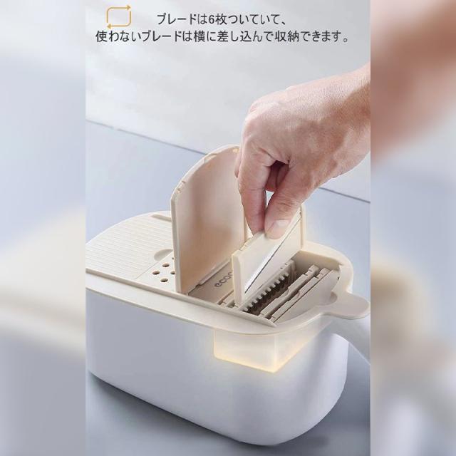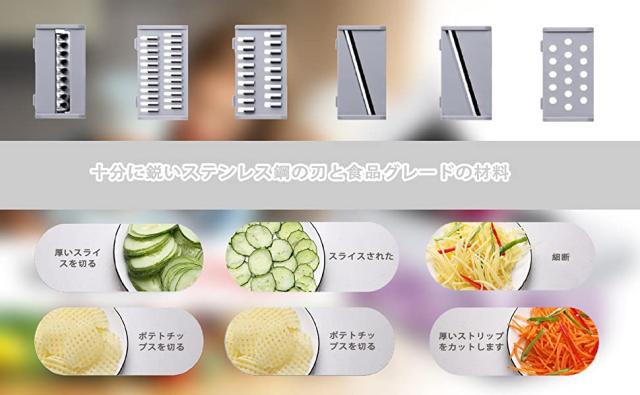 ブレードは、千切りやみじん切りなどの6種類。