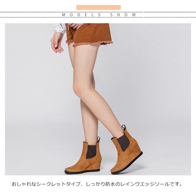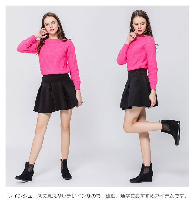 | おしゃれなシークレットタイプ、しっかり防水のレインウエッジソールです。 アウトソールは滑りにくい素材で凸凹形状なので、地面をグリップしてくれるのがうれしいポイント。 スキニーパンツやショートパンツなどマニッシュなボトムスはもちろん、ワンピースやスカートで大人可愛いコーデにも似合います。 6.5cmぐらいのインソールがあり、脚ライン長くみえる、背が高くなります! 全4色展開、23-25cmまでのサイズが用意しています。 レインシューズに見えないデザインなので、通勤、通学におすすめアイテムです。 | |