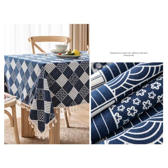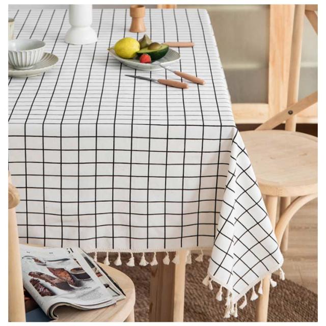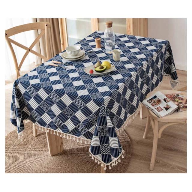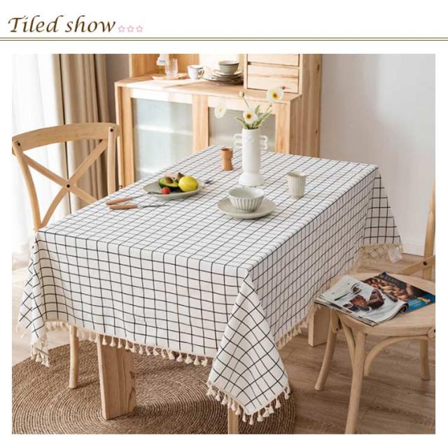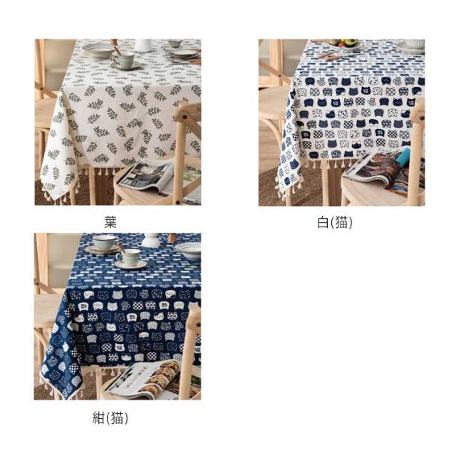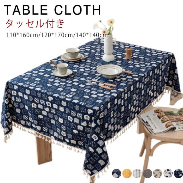 ネコ チェック柄 テーブルクロス 綿麻 110*160cm 120*170cm 140*140cm 長方形 正方形 リネン テーブルクロス 食卓カバー 北欧 タッセル付き デスクカバー ダイニング キッチン テーブルカバー マルチカバー テレビカバー 机カバー 汚れ防止 洗える 家庭用 業務用 送料無料