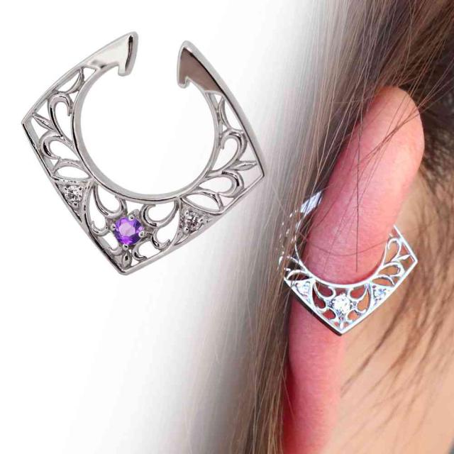 イヤーカフ イヤリング レディース イヤーカフス プラチナ 片耳 アメジスト 唐草