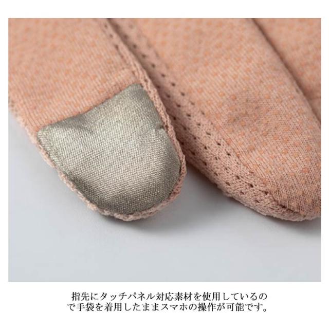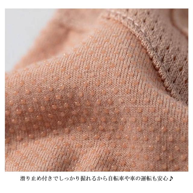 | 色柄いろいろ選べて楽しい♪UVカットレース手袋 指先にタッチパネル対応素材を使用しているので手袋を着用したままスマホの操作が可能です。 滑り止め付きでしっかり握れるから自転車や車の運転も安心♪ 手の甲はレース素材、指の間と手のひらの下部分にメッシュ素材を採用したことにより通気性がアップ、真夏でも涼しいです。 オシャレばデザインなので服装を邪魔しません!どんなシーンにもお使いいただけます。 | |