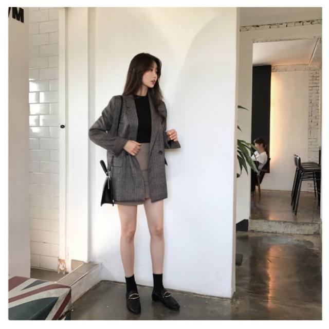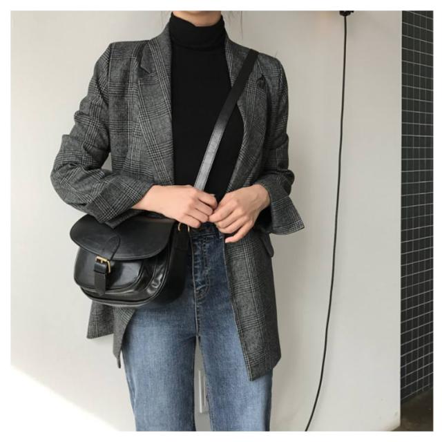 ロング 送料無料 春 大きいサイズ グレンチェック チェック柄 カジュアルジャケット フォーマル アウター テーラードジャケット 韓国ファッション 裏地付き OL レディース