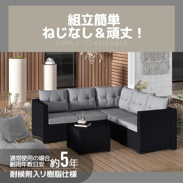 ラタン調 ガーデンファニチャー 5人掛け ガーデンテーブル ガーデンチェアー ラタン調 テーブル 家具 樹脂 ねじなし 楽組 ホテル カフェ ベランダ テラス 屋外家具 高級 テラス ソファ ガーデンソファー