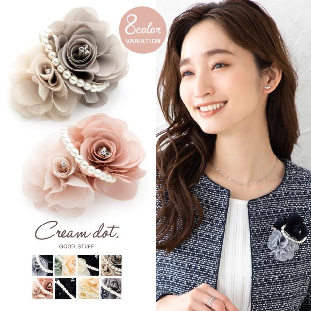 【定形外郵便送料無料】コサージュ パール フォーマル 卒業式 卒園式 入学式 入園式 ママスーツ 花 フラワー ビジュー ピン クリップ バイカラー ネイビー グレー ベージュ ピンク アイボリー 上品 レディース 華やか アクセサリー