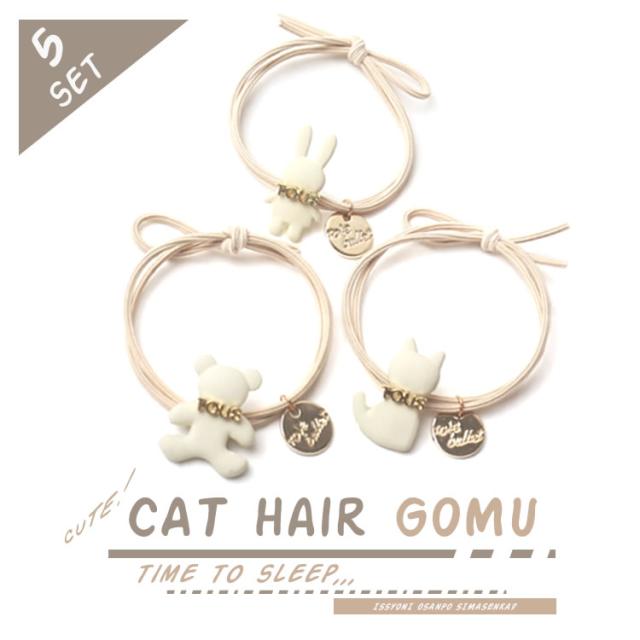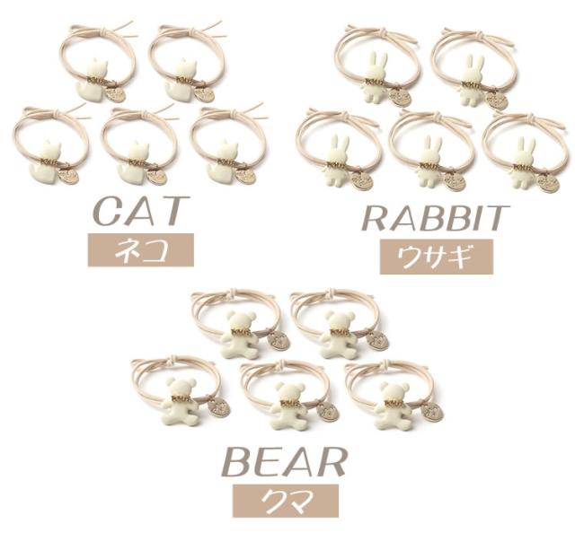 ヘアゴム 5個セット 猫 くま うさぎ かわいい モチーフ付き おしゃれ ヘアアクセサリー PR-HAIRGM02【メール便 送料無料】