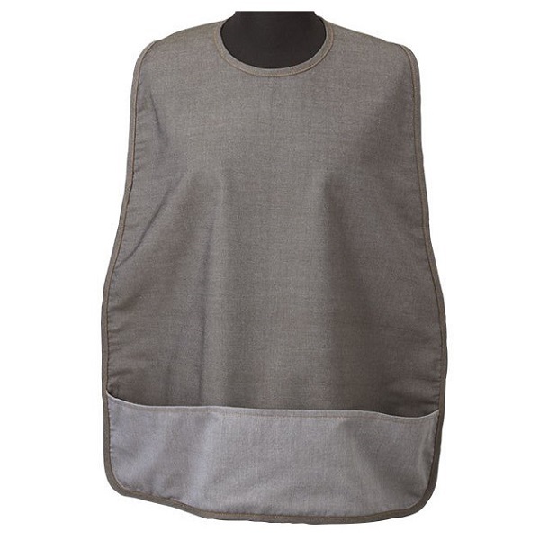 カラーデニム食事用エプロン 2600 カーキ 松本ナース産業 ポケット付 面ファスナー 介護 介助