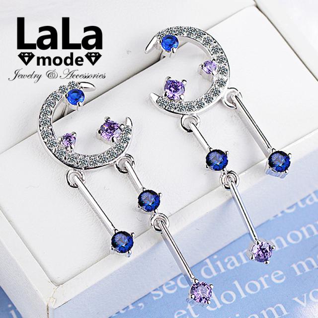 ピアス レディース 月 三日月 ムーン ブルー 青 ドロップピアス CZダイヤモンド AAAA キュービック ジルコニア シルバー925 プラチナ コーティング仕上げ アレルギー対応 送料無料 韓国 ファッション ゆれる プレゼント 人気 シンプル アクセサリー ジュエリー