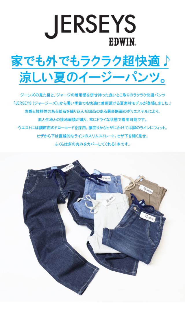 ジーンズの見た目と、ジャージの着用感を併せ持った良いとこ取りのラクラク快適パンツ「JERSEYS (ジャージーズ)」から暑い季節でも快適に着用頂ける夏素材モデルが登場しました♪