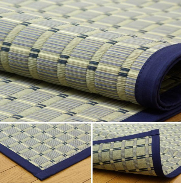 掛川織 い草ラグカーペット 『豊後』 ブルー 江戸間2畳(約174×174cm) 4402002 正方形