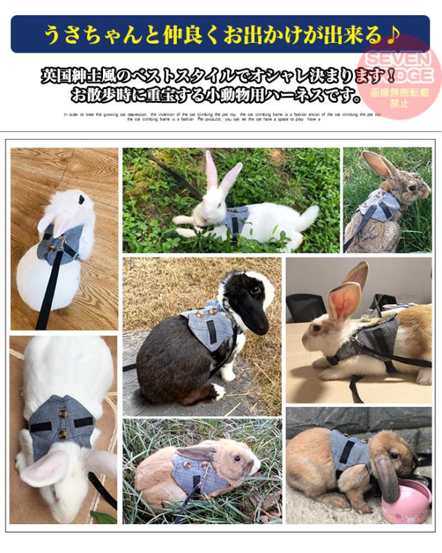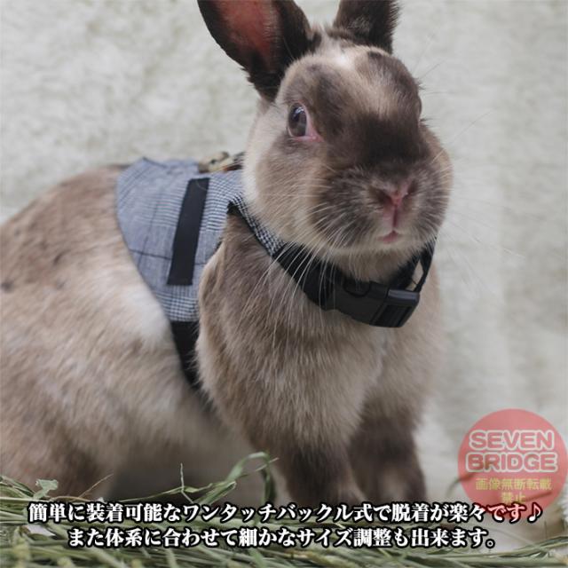 うさぎ ウサギ ベスト ハーネス リード 付 小動物 モルモット フェレット チンチラ プレーリードッグ チェック ペット 服 胴輪 チェック h0406