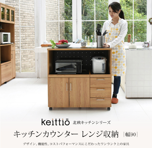 JK-PLAN(ジェイケイ・プラン) 北欧キッチンシリーズ90幅キッチンカウンターレンジ収納(ナチュラル/ブラック) FAP-0030-NABK返品種別A