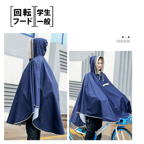 人気の「蒸れないポンチョ」に自転車用が登場! 前カゴまですっぽり被れてカゴの荷物も足元も濡れません 風によるめくれ防止のクリップ付きで安心!