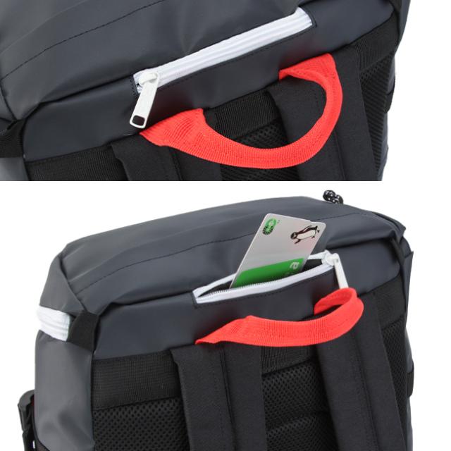 取り回ししやすい手持ちハンドル / AirPodsや自転車の鍵など、ちょっとした小物収納に便利なミニポケットもあります。