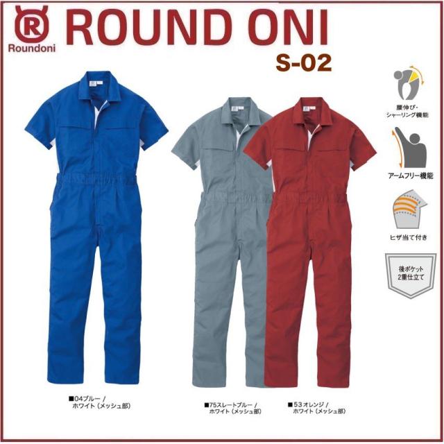 半袖ツナギ 丸鬼商店 S-02 ROUND ONI S02 (社名ネーム一か所無料)(すそ直しできます)