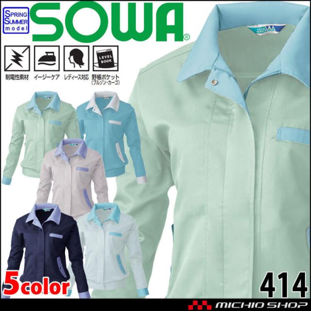 SOWA 桑和 レディース長袖ブルゾン 414 作業服 作業着 春夏 制電性 イージーケア 大きいサイズ3L・4L