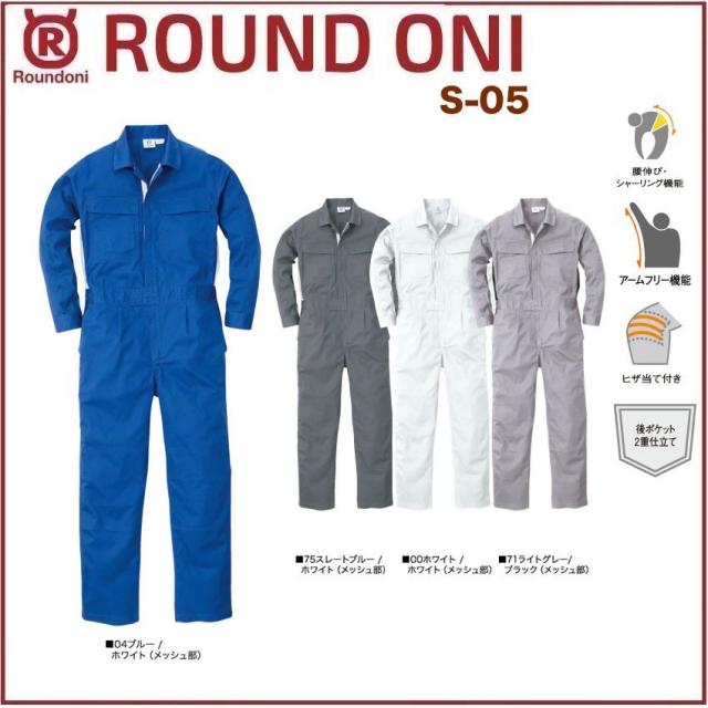 長袖ツナギ S-05 ROUND ONI S05 丸鬼商店 (社名ネーム一か所無料)(すそ直しできます)