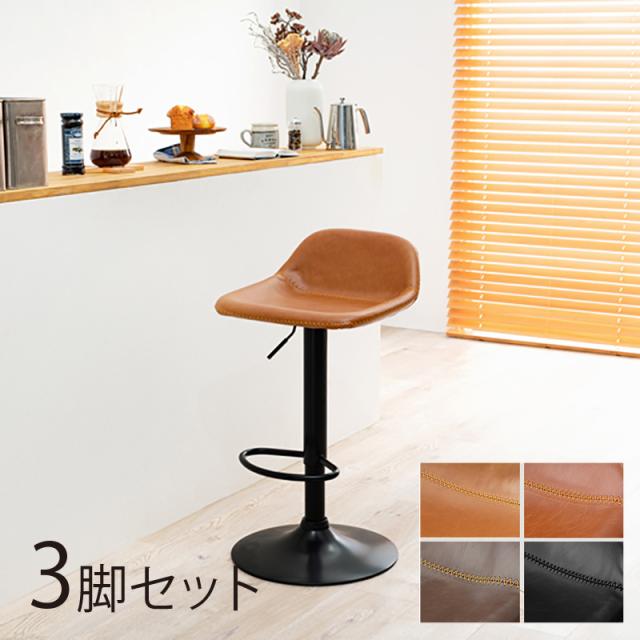 カウンターチェア【3脚セット】背低タイプ キャメル ブラウン ブラック ダークブラウン 4色ご用意 幅42 奥行42 高さ74-95 座面高58-79cm ハイチェア 昇降式 バーチェア バーカウンターチェア コントラクトにも カウンター椅子 LC-26-BC