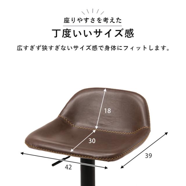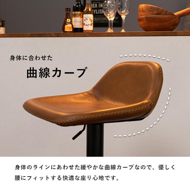 味のある表情の合成皮革を使用した、ヴィンテージ感漂うカウンターチェア