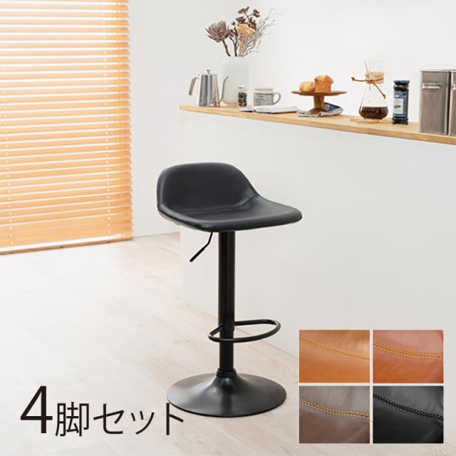 カウンターチェア【4脚セット】背低タイプ ブラック ダークブラウン ブラウン キャメル 4色ご用意 幅42 奥行42 高さ74-95 座面高58-79cm ハイチェア 昇降式 バーチェア バーカウンターチェア コントラクトにも カウンター椅子 LC-26-BC