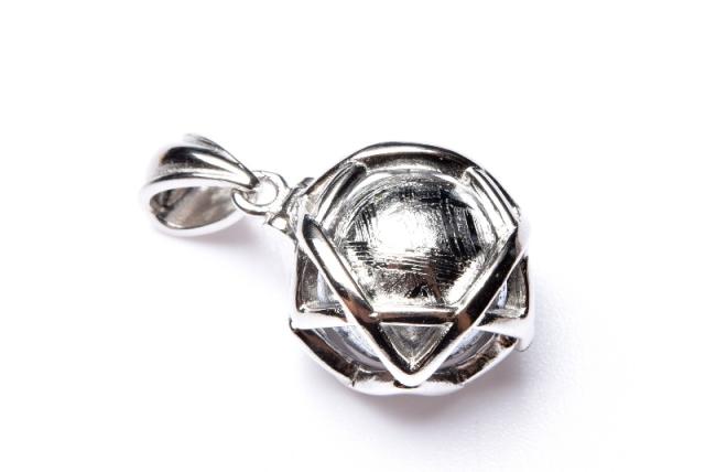 Silver925 ギベオン(メテオライト隕石) 10mm 丸玉 ペンダントトップ_PRG708-1