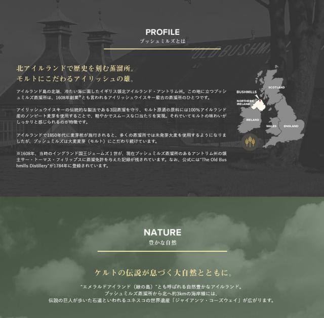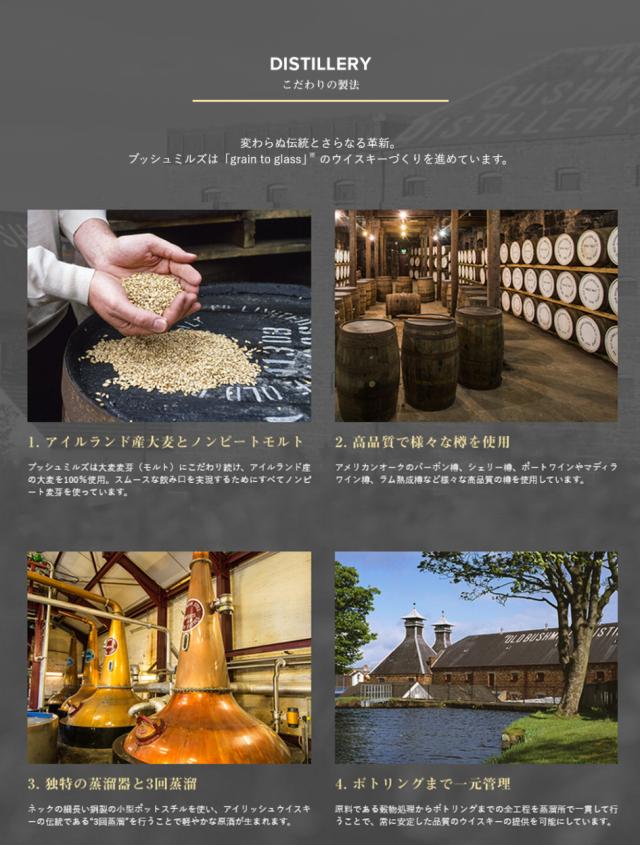 ![]() ブッシュミルズ・ブラックブッシュ オロロソシェリー樽とバーボン樽で最長7年長期熟成させたモルト原酒を80%以上使用し、少量生産のグレーンウイスキーとブレンド。シェリー樽熟成由来の熟した果実の香りと重厚な味わいが特徴です。[モルト原酒80%] 【香り】 円熟した濃厚な香りからすぐに軽やかでスパイシーなフルーツケーキのような香りに変わる。 【味わい】 奥深い味わいが舌の上で湧き立ち、喉の奥へと広がる。口当たりはシルキーでスムース。シェリーの甘さも心地いい。 【余韻】 芳醇で甘い余韻が長く続いていく。シェリー樽由来の力強さとモルト自体のやわらかさがバランスよく調和する。 ◎容量:700ml ◎アルコール分:40% |