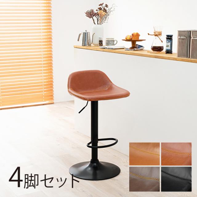 カウンターチェア【4脚セット】背低タイプ ブラウン ブラック ダークブラウンキャメル 4色ご用意 幅42 奥行42 高さ74-95 座面高58-79cm ハイチェア 昇降式 バーチェア バーカウンターチェア コントラクトにも カウンター椅子 LC-26-BC