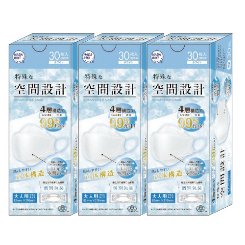 不織布 マスク HADARIKI 空間設計マスク ホワイト 30枚入り×3 【3個セット】送料無料 個包装 カラーマスク