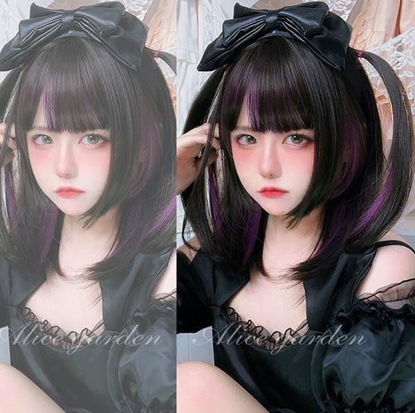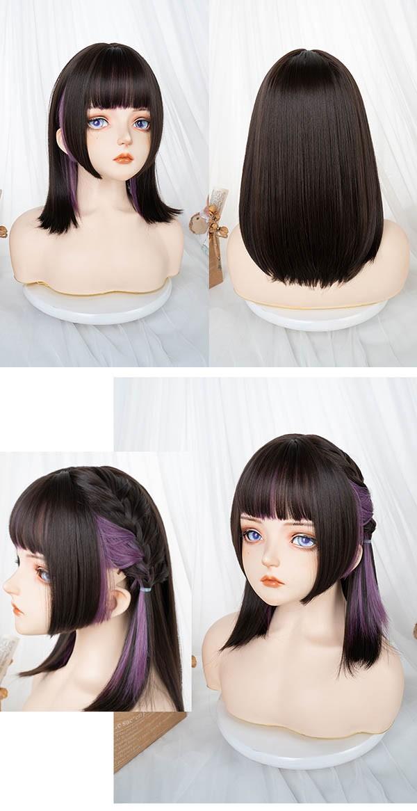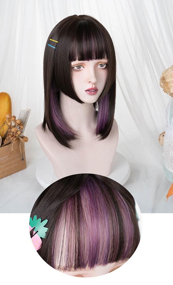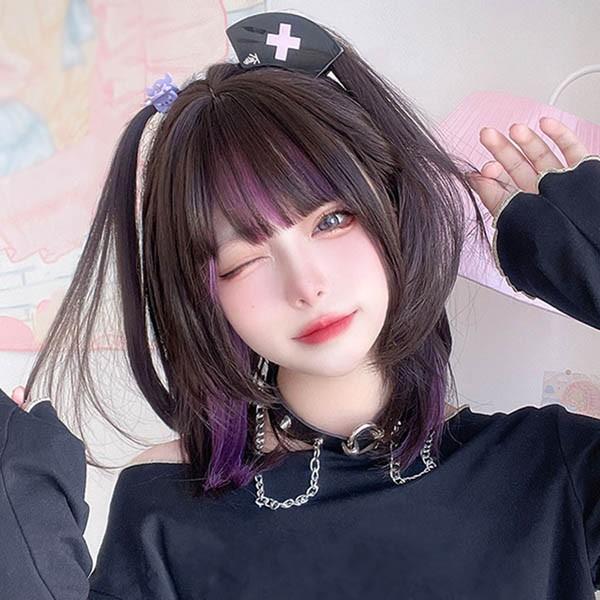 フルウィッグ かつら インナーカラー パープル 女性 短髪 普段使い ミモレ丈 ショートウィッグ ショートヘア 前髪あり 自然 可愛い キュート ウイッグ wig コスプレ 耐熱ウィッグ 茶髪 小顔効果抜群 コスチューム 文化祭 学園祭 イベント 韓国風 変装 女装 dp203n1n1c9