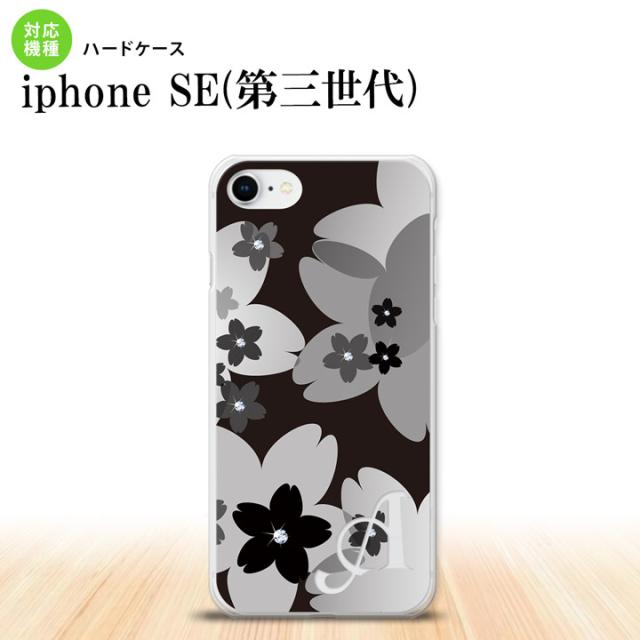 iPhoneSE3 iPhoneSE 第3世代 スマホケース ハードケース 花柄 サクラ C 黒 +アルファベット メンズ レディース nk-ise3-061i