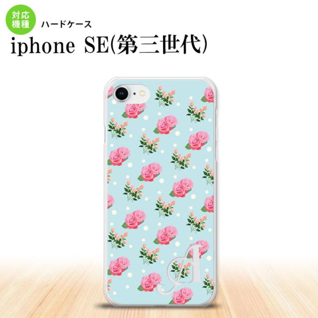 iPhoneSE3 iPhoneSE 第3世代 スマホケース ハードケース 花柄 バラ ドット 水色 +アルファベット メンズ レディース nk-ise3-241i