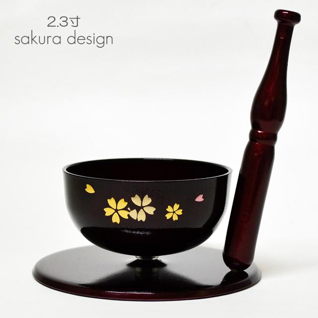 リンセット 054 ワインレッド 桜模様入り ミニ仏壇用 仏具 コンパクト りんセット