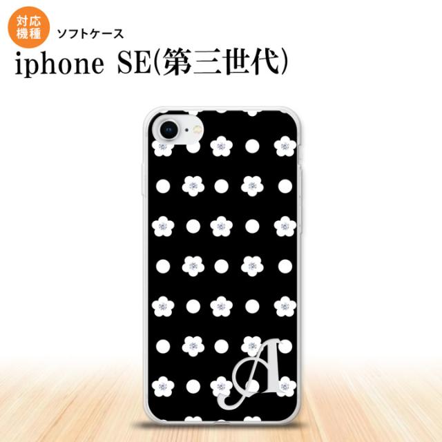 iPhoneSE3 iPhoneSE 第3世代 スマホケース ソフトケース 花柄 ドット 黒 +アルファベット