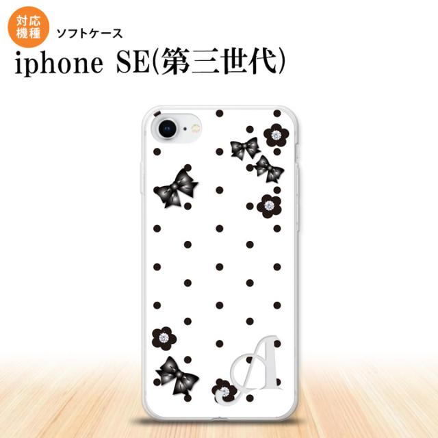 iPhoneSE3 iPhoneSE 第3世代 スマホケース ソフトケース 花柄 ドット リボン 白 +アルファベット