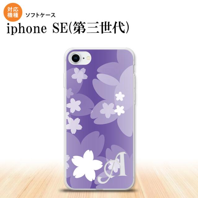 iPhoneSE3 iPhoneSE 第3世代 スマホケース ソフトケース 花柄 サクラ C 紫 +アルファベット