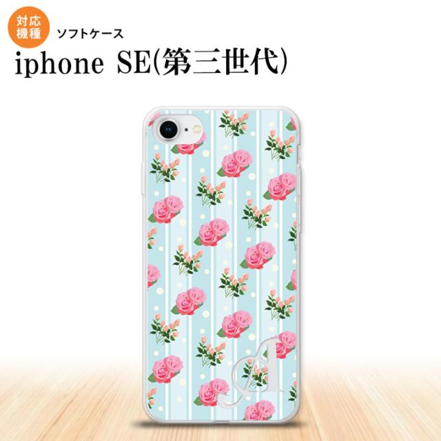 iPhoneSE3 iPhoneSE 第3世代 スマホケース ソフトケース 花柄 バラ レース 水色 +アルファベット