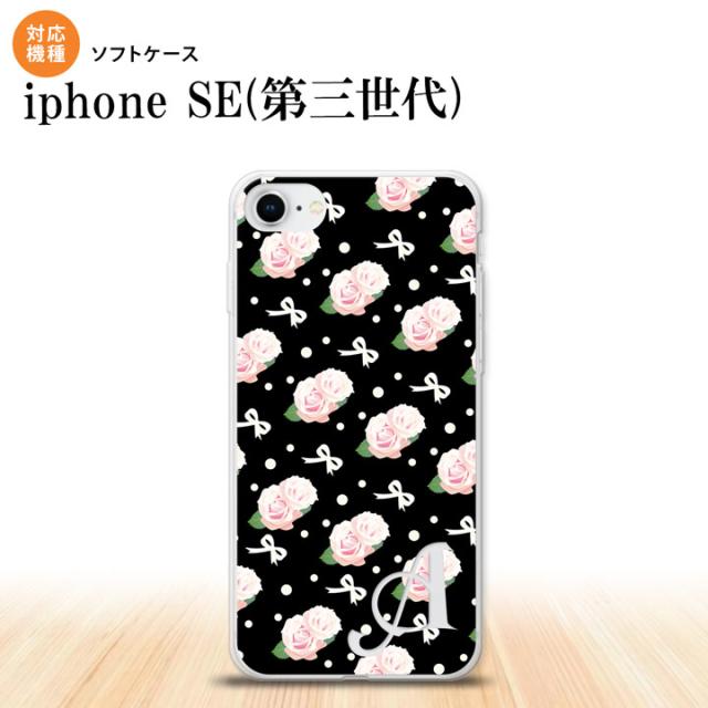 iPhoneSE3 iPhoneSE 第3世代 スマホケース ソフトケース 花柄 バラ リボン 黒 +アルファベット