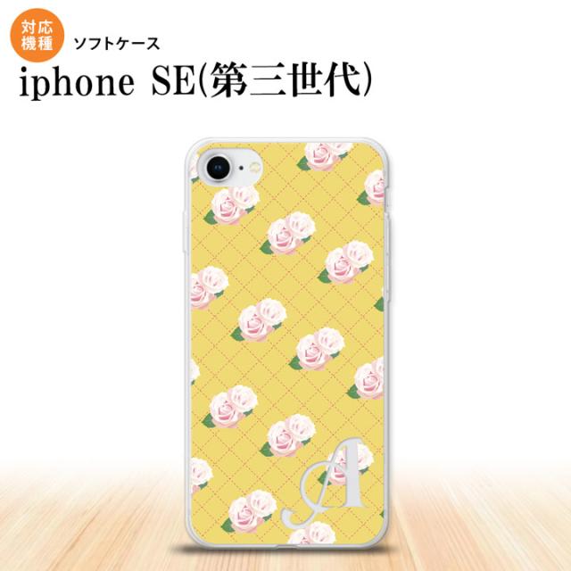 iPhoneSE3 iPhoneSE 第3世代 スマホケース ソフトケース 花柄 バラ 編み 黄 +アルファベット