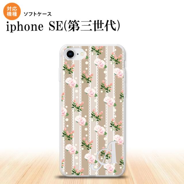 iPhoneSE3 iPhoneSE 第3世代 スマホケース ソフトケース 花柄 バラ レース ベージュ +アルファベット