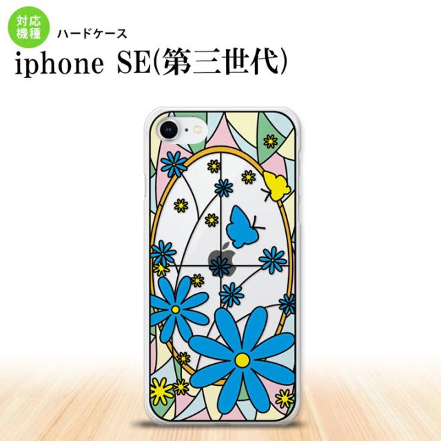 iPhoneSE3 iPhoneSE 第3世代 背面ケース カバー ステンドグラス風 おしゃれ ガーベラ ブルー ステンドグラス風 かわいい おしゃれ 背面ケース nk-ise3-sg02