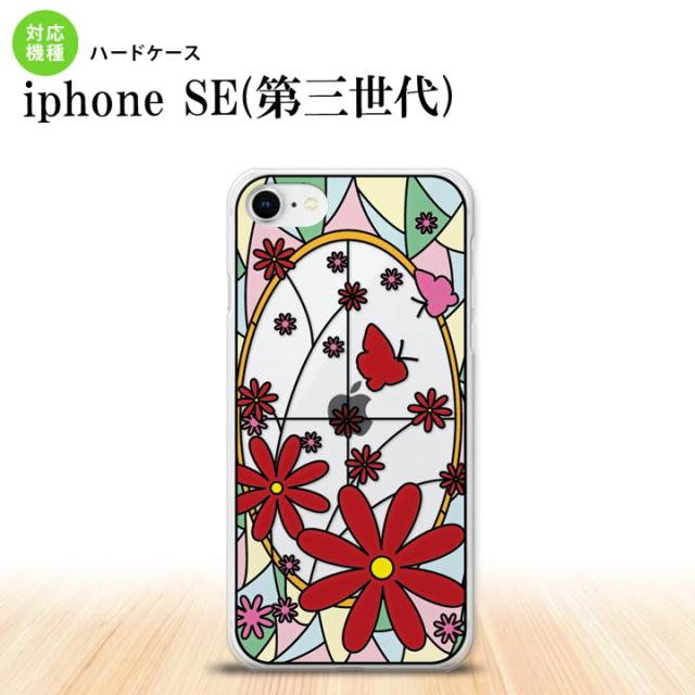 iPhoneSE3 iPhoneSE 第3世代 背面ケース カバー ステンドグラス風 おしゃれ ガーベラ レッド ステンドグラス風 かわいい おしゃれ 背面ケース nk-ise3-sg03