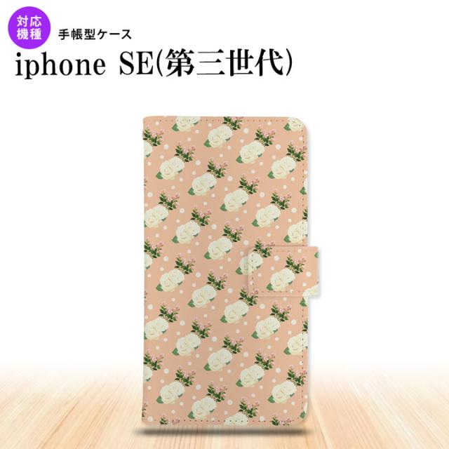 iPhoneSE3 iPhoneSE 第3世代 手帳型スマホケース カバー 花柄 バラ ドット ライトサーモン nk-004s-ise3-dr245