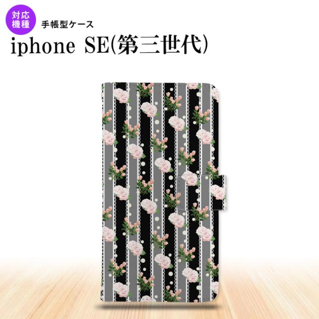 iPhoneSE3 iPhoneSE 第3世代 手帳型スマホケース カバー 花柄 バラ レース 黒 nk-004s-ise3-dr259